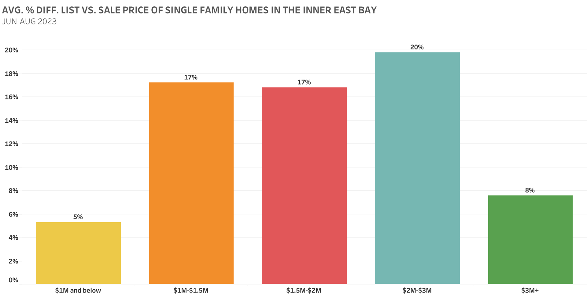 However, buyers remain in fierce competition for the most attractive homes. In fact, homes that sell in the $2M-$3M range sell an average of 20% over list price.