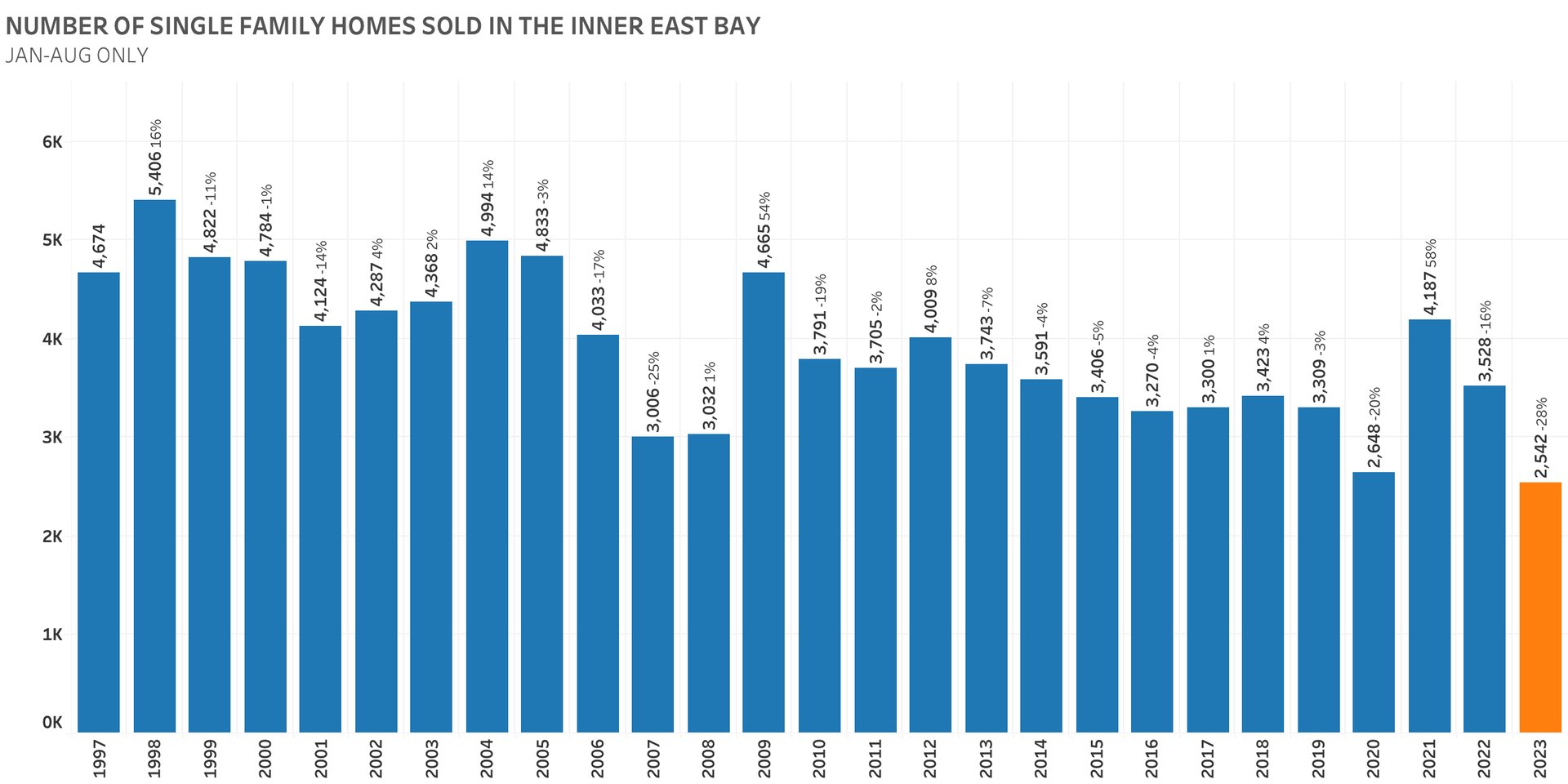 The number of new listings that have come to market Jan-Aug is at its lowest level since Red Oak began tracking in 2011. As a result, year-to-date sales are at their lowest level since the local multiple listing service (MLS) went online in 1997.