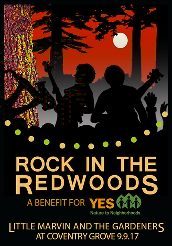 On Saturday, September 9, 2017, YES and local band, Little Marvin and the Gardeners, will join forces again at Coventry Grove, a magical 300-seat redwood grove amphitheater in the nearby Kensington hills to present our fourth annual Rock in the Redwoods benefit concert! Come dance and dine the night away: all proceeds benefit YES programming for Richmond youth and families.