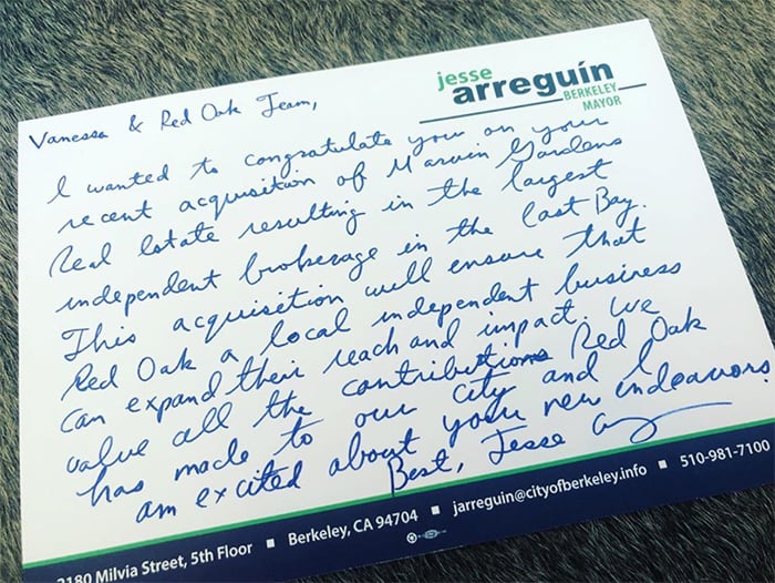 Berkeley mayor Jesse Arreguin congratulated us on the Marvin Gardens acquisition.