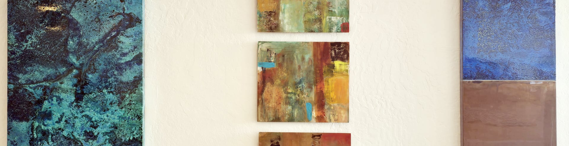 Stephen applies different acids to create stunning patinas on copper and brass. The resulting compositions vary in color and texture and evoke oceans and geological forms. He was raised in Sacramento, and now has a studio in Richmond, where a dynamic art community thrives. Stephen also works with kids through the non-profit, SkidMore Project engaging their natural curiosity as art and science play together.