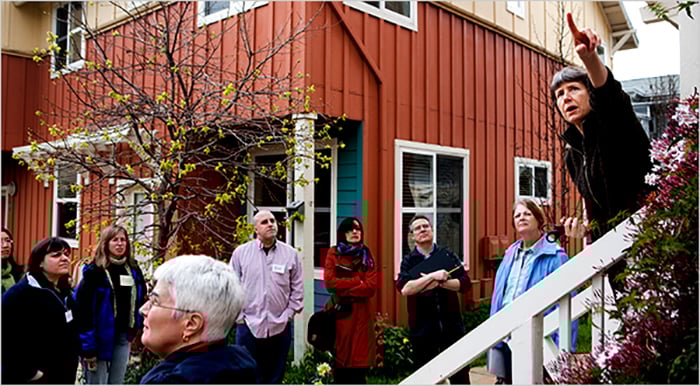 Intentional communities come in two flavors: cohousing, with individual homes clustered together in a tight-knit community with more privacy, and co-living, where up to 30 people can share a large house, including all common areas. Cohousing communities tend to offer more permanent living situations than co-living, which can have higher turnover rates.