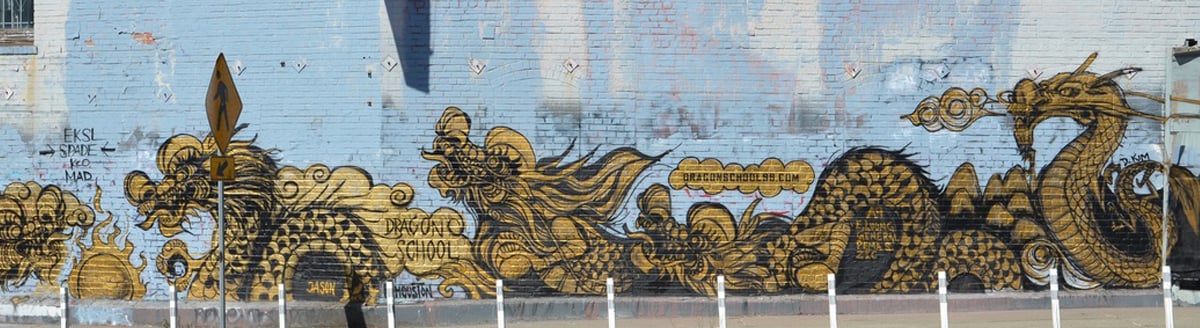 Oakland’s Chinatown is home to some dramatic and beautiful pieces. Community leaders worked with the city, Chinatown businesses and local artists to create the first dragon mural back in 2012 in an effort to thwart growing graffiti attacks. Since then more have been created throughout the neighborhood honoring Chinese symbols and traditions. Many of these projects were spearheaded and created by 333 Arts (originally named Dragon School), a nonprofit started in 2015 to create public artwork for the community. They’ve since broadened their reach to include additional neighborhoods.