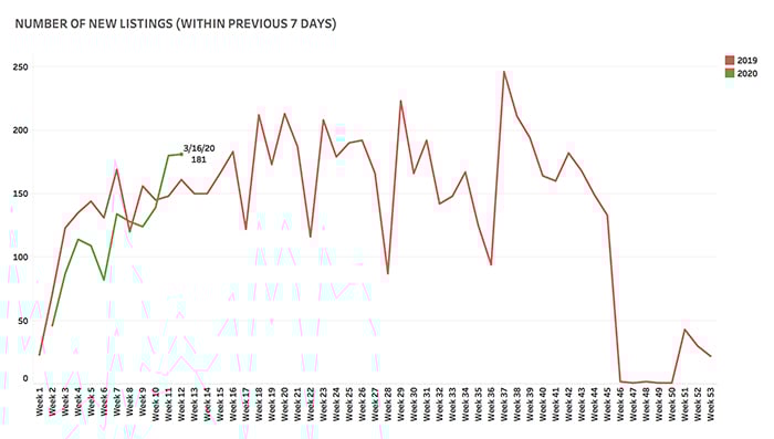 The market remains active. In the week through Monday, March 16, we saw 181 new listings come on the market in Berkeley, Oakland, Albany, El Cerrito and Piedmont, nearly 30 more new listings than came on the market in the same period in 2019.