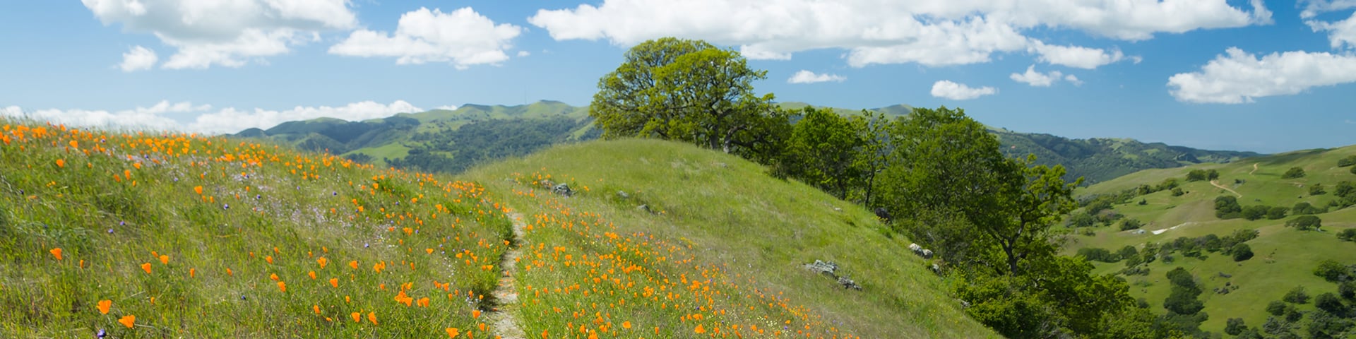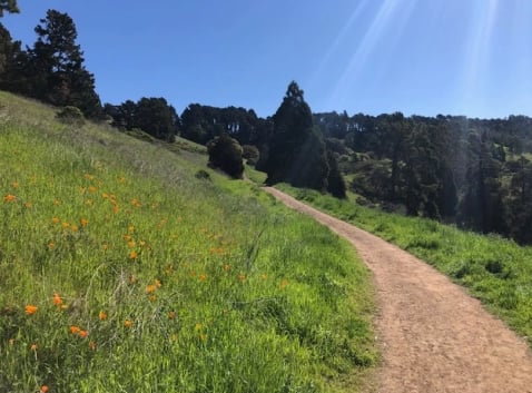 Bay Area Ridge Trail - Head south from the Tilden Park steam trains in Berkeley and you’ll discover the Ridge Trail - sometimes referred to as the Trillium Trail. The hillsides are covered with lupines, poppies, mule’s ears and more.