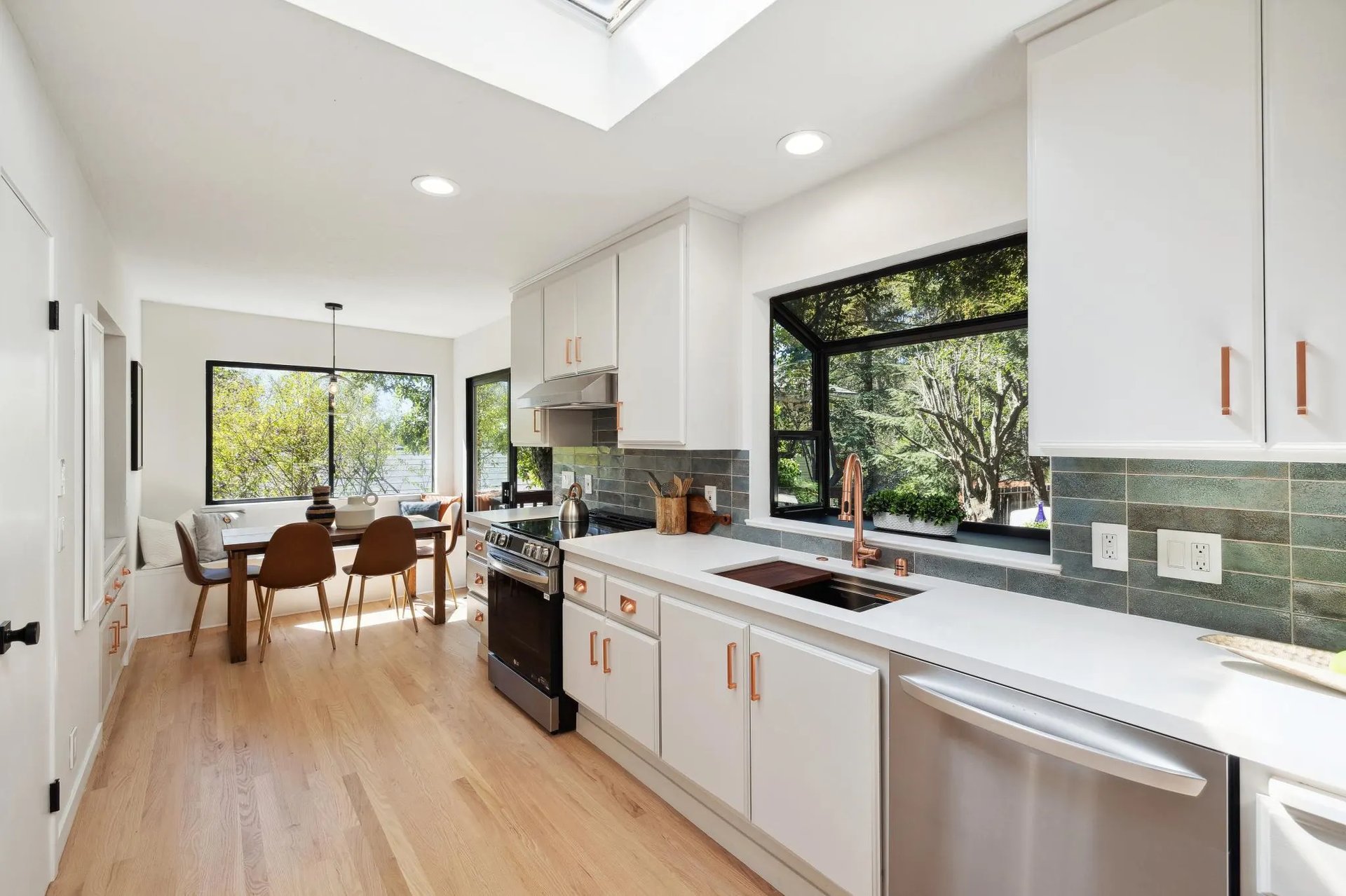 At another standout listing, Don Adamson worked with Freemodel to reimagine a grandiose East Bay estate. The scope was extensive: new white oak flooring, plumbing upgrades, a full kitchen rebuild, garden installations, exterior paint, and even a refreshed cottage on the property. The improvements not only made the home beautiful—they made it insurable, financeable, and market-ready.
