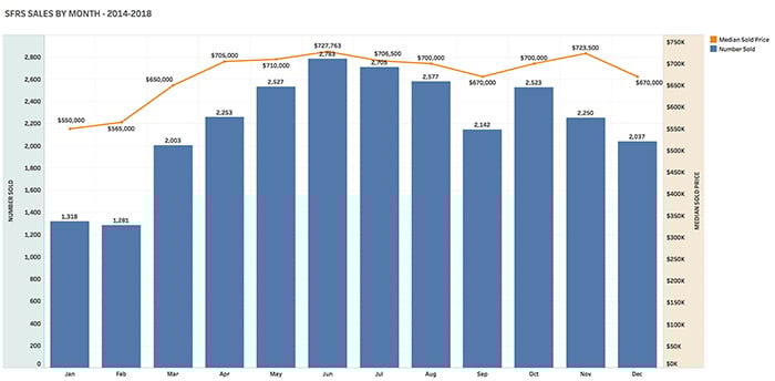 Generally, sales peak in the spring (in the months April, May and June) and then rise again in the fall (September and October). At these times, kids are in school, buyers and sellers are in town with more settled schedules.