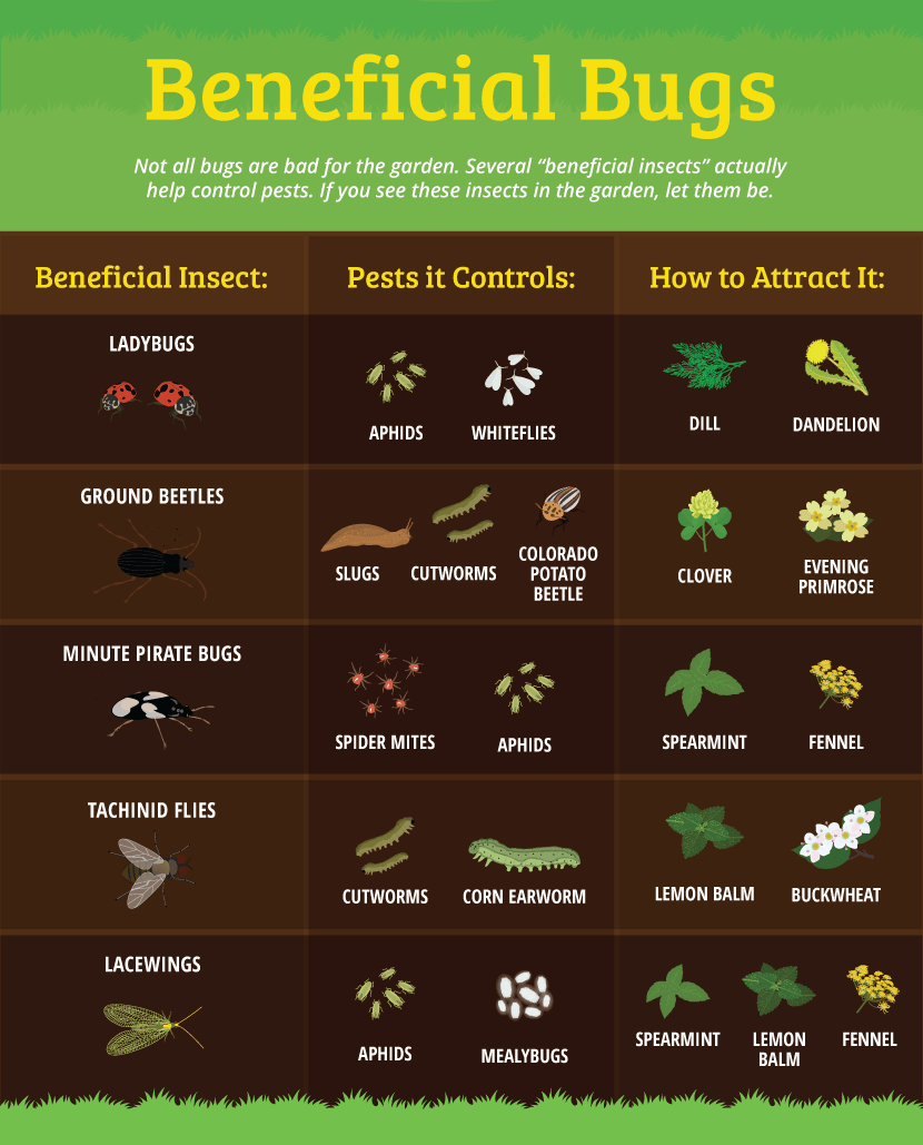 Many insects are beneficial to our gardening efforts. Ladybugs can be invaluable in the fight against unwanted pests. They eat aphids and mites plus the eggs and larvae of many destructive insects. Praying mantises, lacewings and parasitic wasps also assist. Beneficial garden insects can be purchased locally or ordered online. Be sure you don’t use any chemicals for at least 10 days before releasing your new friends.