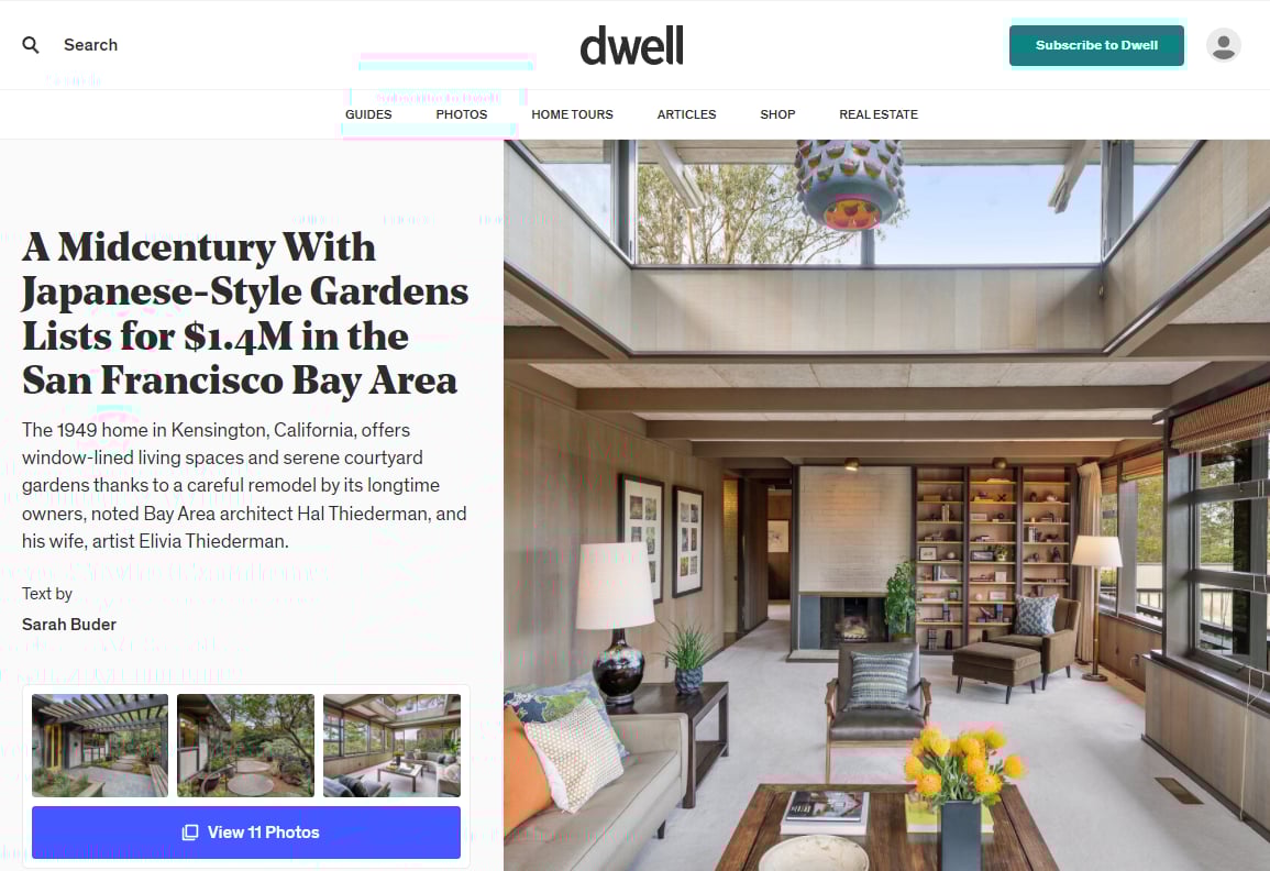 Working alongside Red Oak’s marketing team and PR agency, Lion & Orb, the team secured media coverage in both local and national outlets. In addition to a feature in SF Gate, the property was also picked up by Dwell, whose article inspired the new buyers to go and see the property and eventually purchase it.