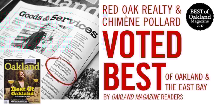 Red Oak Realty is honored to have been voted “Best Real Estate Company” by readers in Oakland Magazine‘s annual “Best Of” issue, which is now on newsstands. And congrats to Red Oak Realtor Chimene Pollard, who was voted “Best Real Estate Agent.” Thanks to everyone who voted!