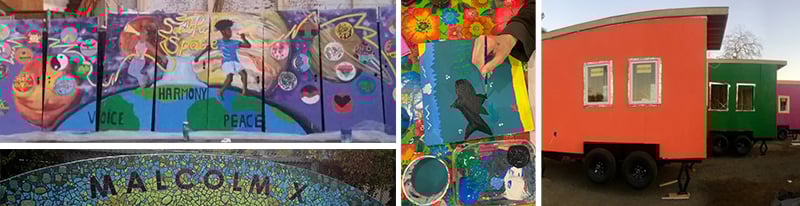 Founded in 2007, Youth Spirit Artworks uses the arts as a vehicle to develop skills and employment opportunities for underserved young people in the Bay Area. The Fine Art program provides a space and outlet for original artwork and hosts a Poetry Slam and performance pieces. YSA’s Community Art program partners with local artists, businesses and schools to enliven the community with public art. For example, if you take a stroll along Alcatraz Avenue in Berkeley you’ll enjoy some of their original murals, mosaic signs and tiled street barricades.
