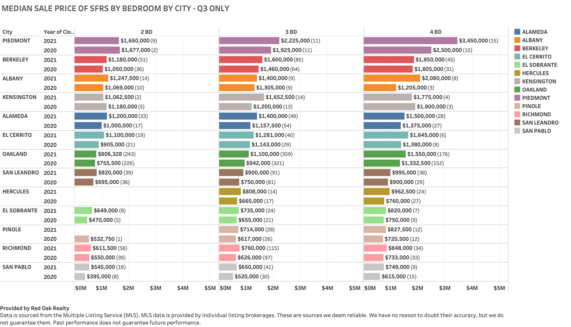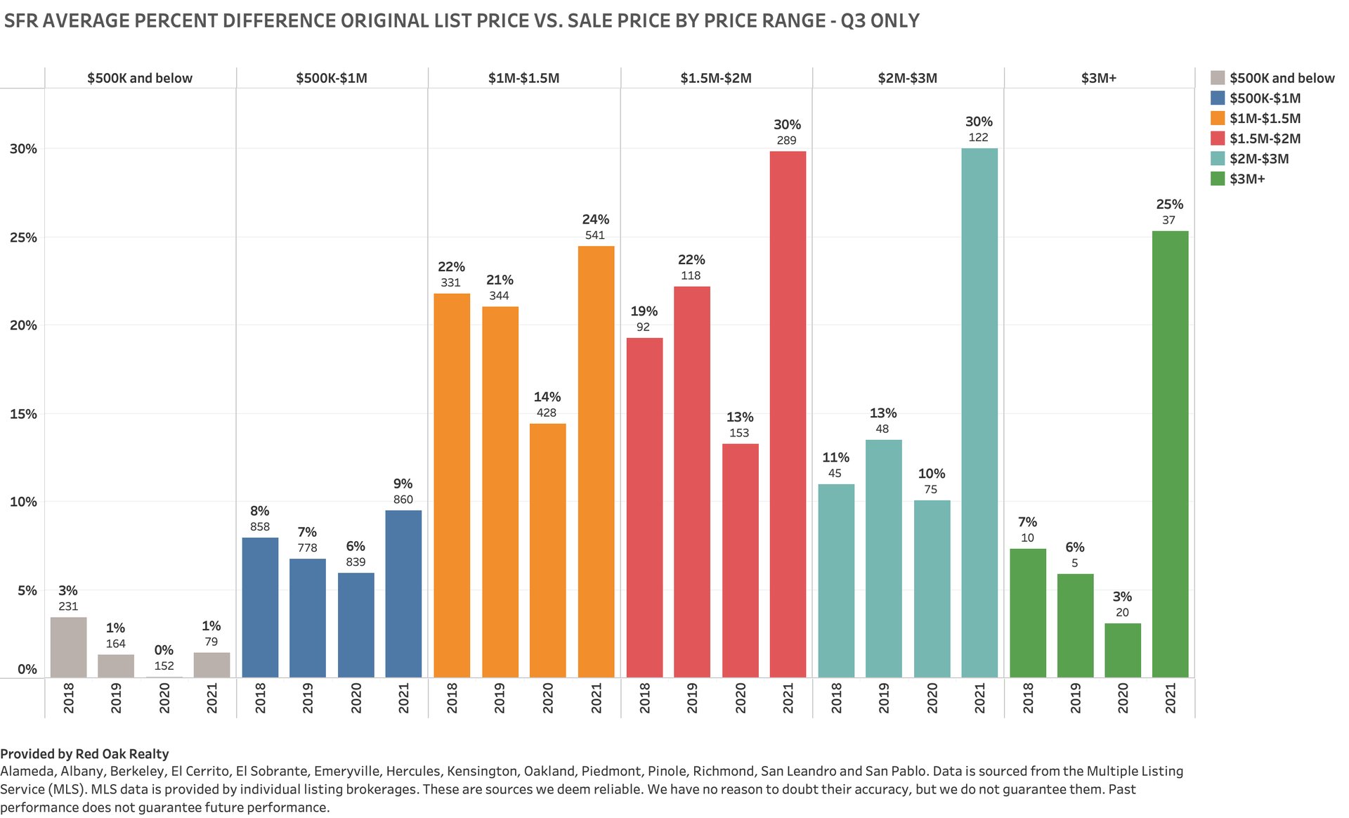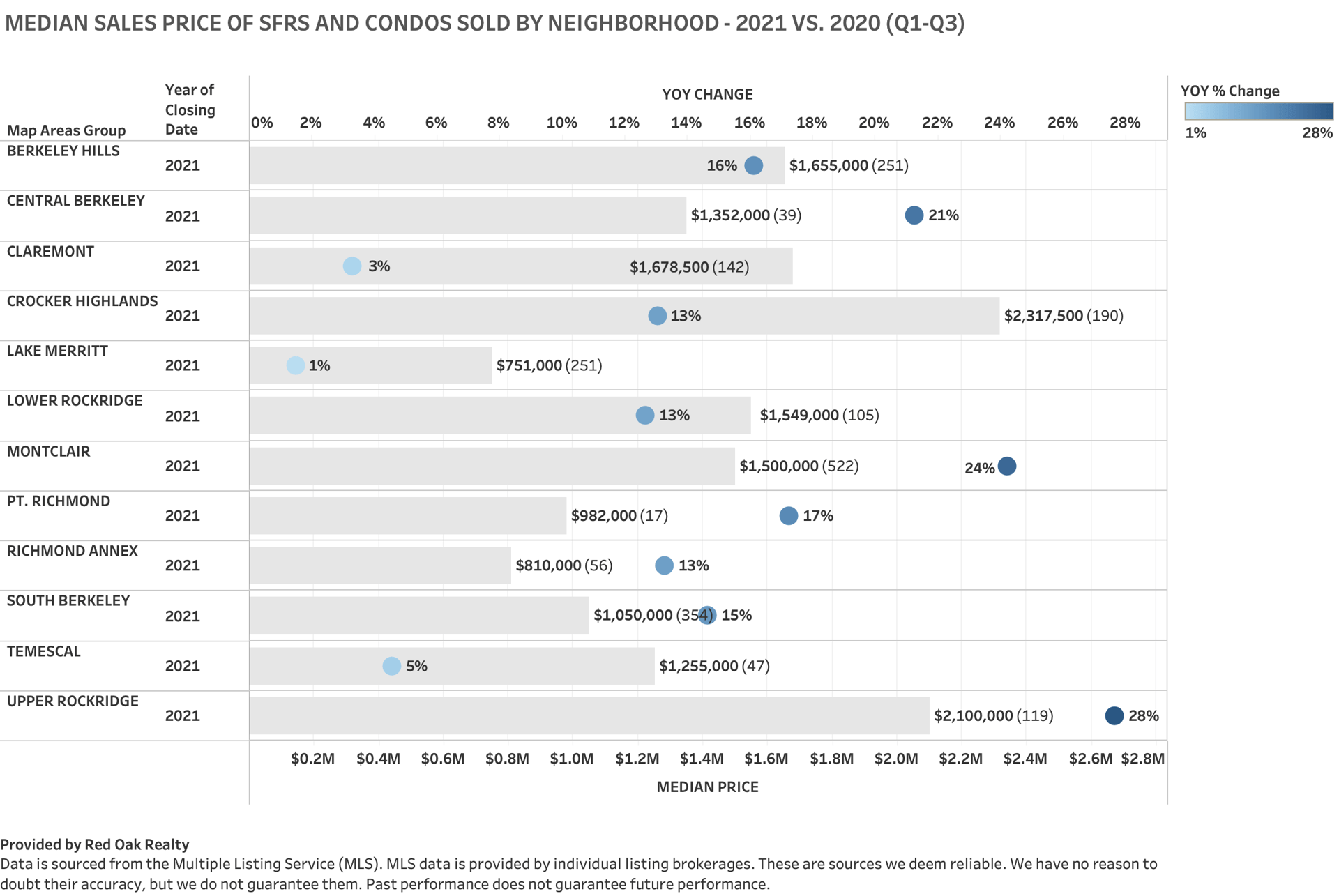 These differences are hard to surface in data because the variations in each property are driven by so many factors, but if we look back at East Bay market stats for the third quarter of the year (July through September), we see that the market has not been performing consistently for all listings.