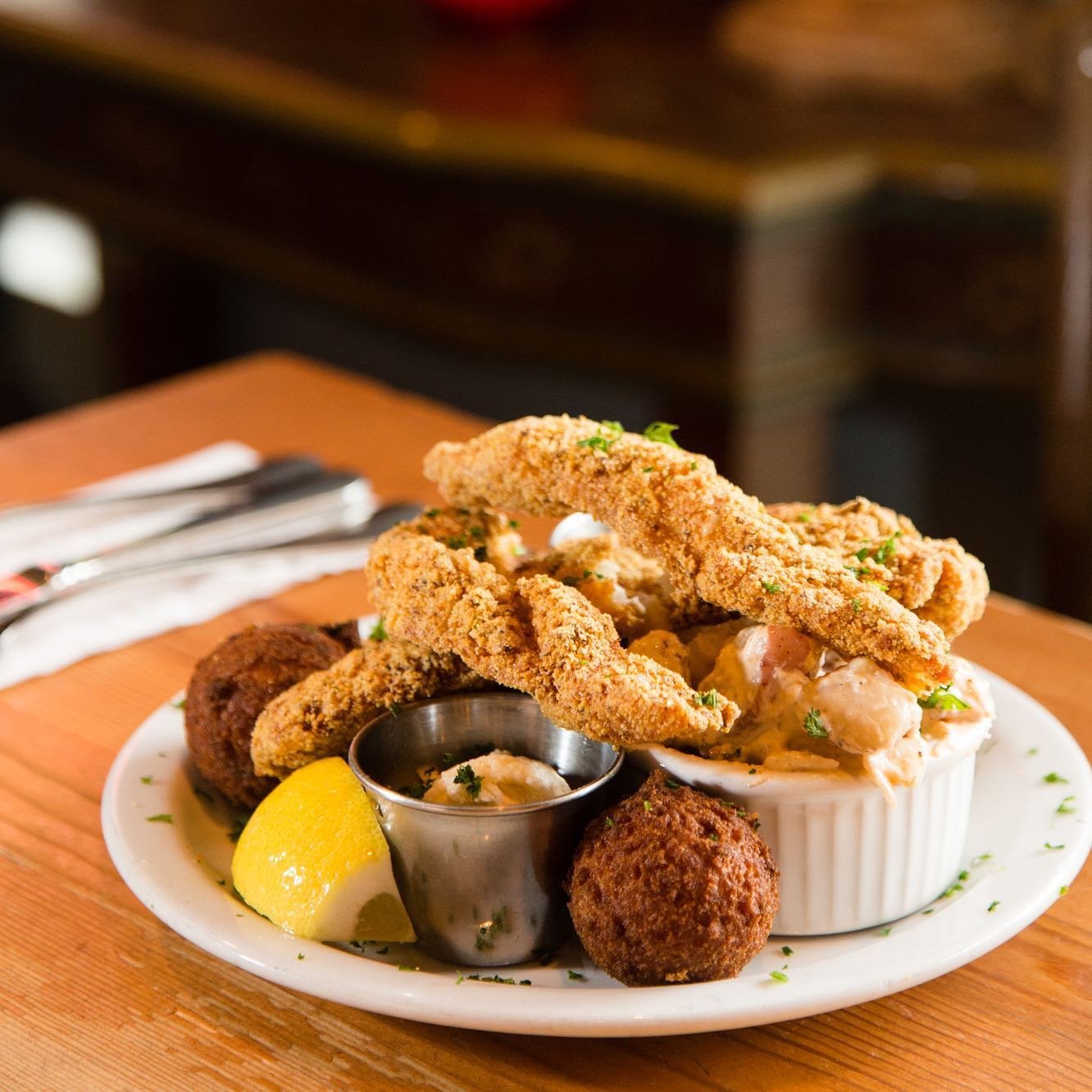 Photo from Angeline’s Facebook page • Fried catfish and hushpuppies