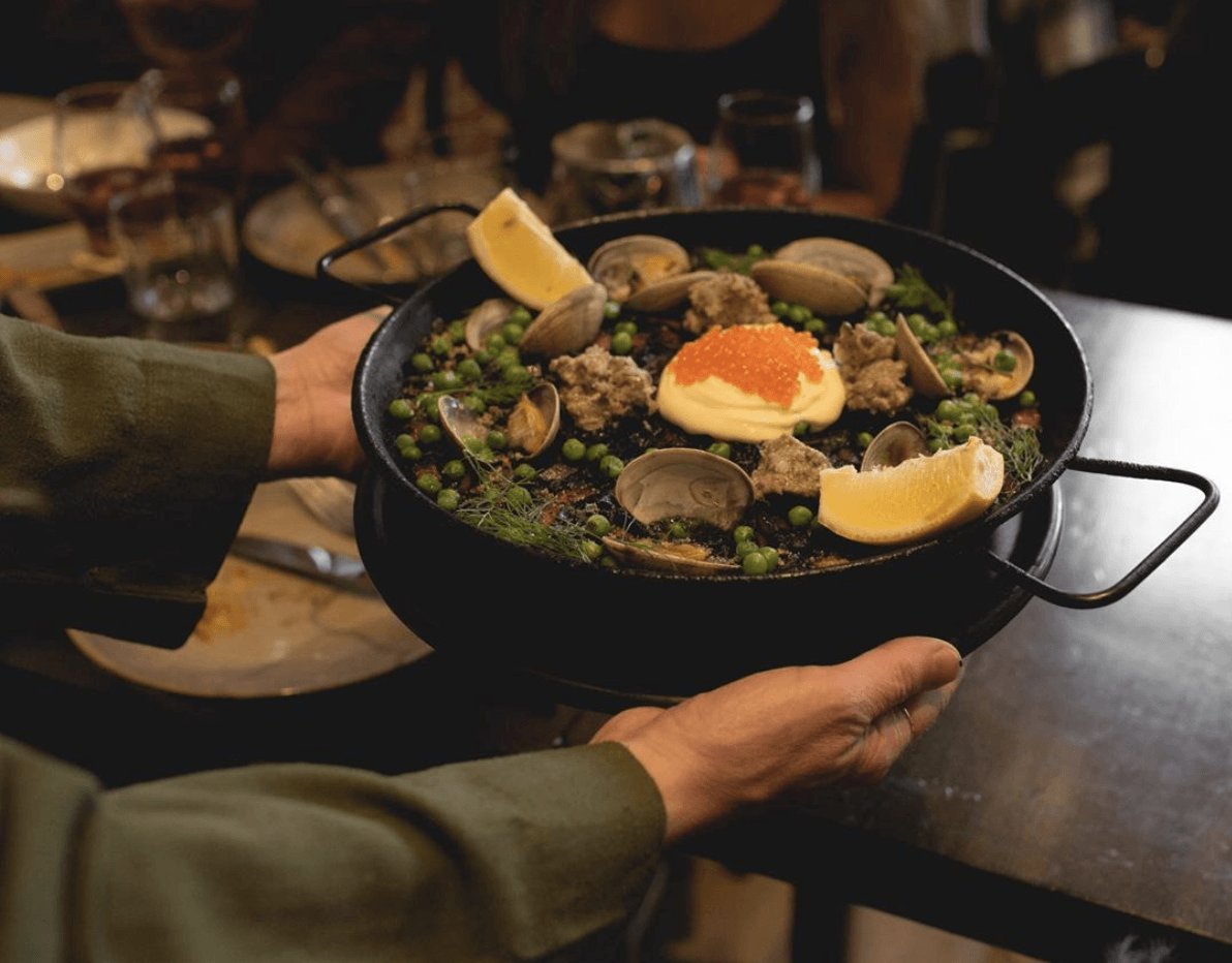 Photo from La Marcha’s Instagram page • Arroz negro paella for two
