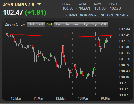Due to the massive volatility, most lenders have not updated their pricing on earlier this week to fully reflect the pricing we are seeing in the market, fearing another steep drop. If MBS can stay steady over the next couple of days, we should see a return to pricing in the low 3s on 30-year fixed-rate mortgages and high 2s on 15-year fixed-rate loans.