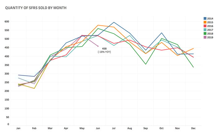 In addition, the number of homes sold in June dropped 18 percent from June 2018. This is not due to a lack of inventory -- but to homes languishing on the market longer than they have in years past.