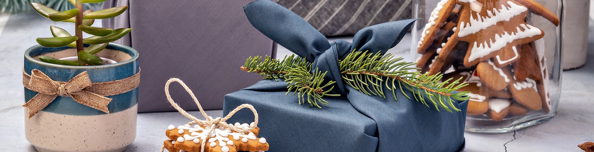 Wrap your gifts by recycling: use old maps, comic pages, or reusable gift bags or baskets. Use reusable ribbons and bows, or decorate them with herbs, pinecones, holly, or other natural materials.