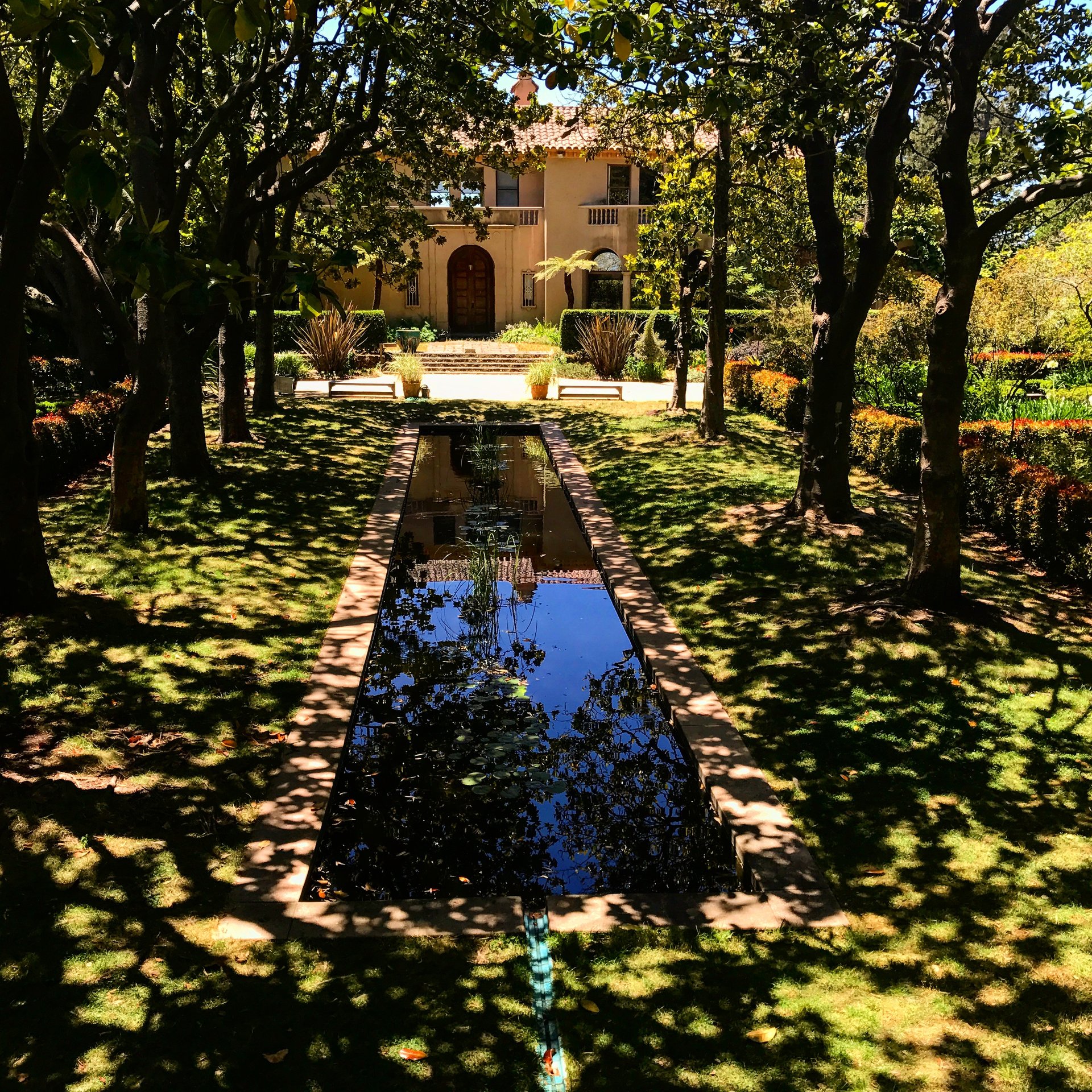 Most people, even local East Bay residents, don't know about Blake Gardens, probably because it is off the main drag with no signage, and it's closed on weekends. It is a not to be missed local treasure, located off Arlington Ave. in Kensington, just a few miles north of Berkeley. It is free to the public, with 10.6 acres to explore, ranging from flower gardens, reflecting pools, a creekside redwood grove, and a formal reflecting pool. There is no public access to the grand home designed by Walter Bliss, for Mr. and Mrs. Anson Blake in the 1920's, however the gardens are reason enough to visit. While you wander around this amazing property, admiring the beautiful views of the Bay and Golden Gate, you will often see Cal students who use the garden as an outdoor laboratory for plant identification and to study landscape and architechtural design. Local nursery schools and children's groups will meet for games on the large shaded lawns, and the garden is also frequently used by plein-air painting groups. Be sure to meander down the paths on the opposite side of the home, and make a grand tour all the different micro-climates and garden rooms throughout the property. Blake gardens is a great place for a picnic, or just to hang out and admire the beautiful gardens. Just don't try to come on the weekend.