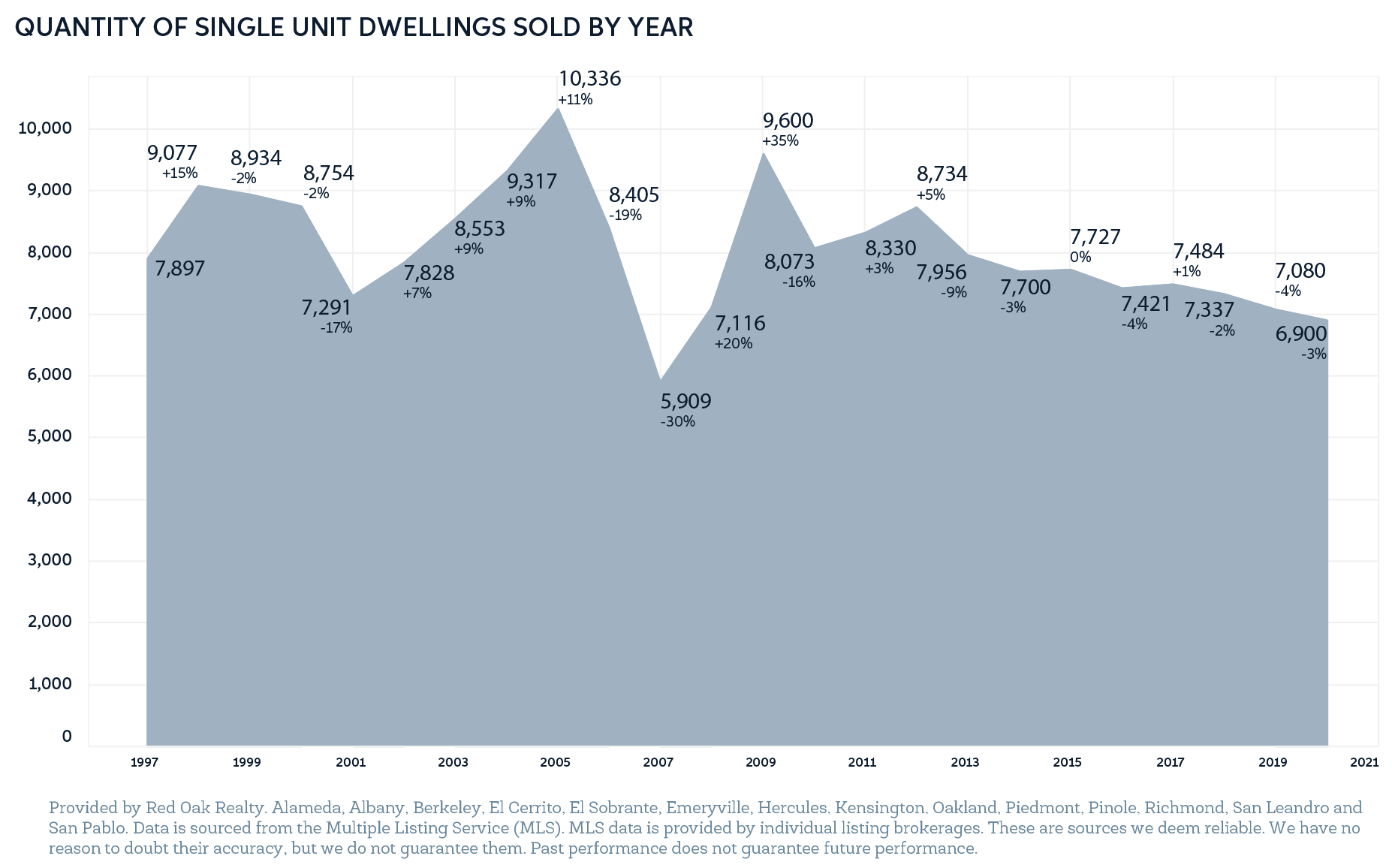 As a result of buyers looking for larger properties, homes that have a yard were in greater demand than those without (with yard sold an average of 9.9% over list, without yard sold 7.9% over list), and homes with 4 bedrooms appreciated twice as fast as those with 3 bedrooms (an average of 18% for 4 bedrooms and 8% for 3 bedrooms, 2019 vs. 2020). Similarly, single-family homes were in higher demand than condos (condos sold an average of 1.7% over list, single-family properties sold 10.7% over list). We also saw a high number of sellers move out of the Bay Area entirely, with many Red Oak sellers moving to Sacramento, Oregon and Washington.