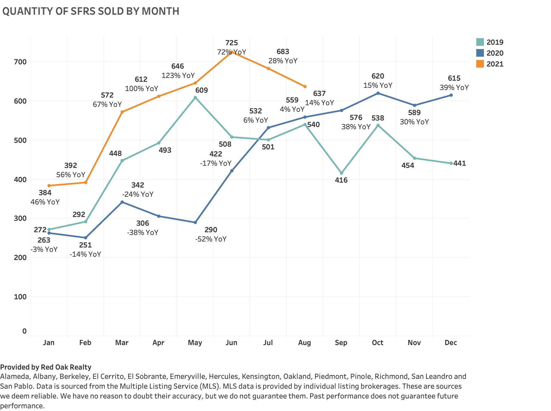In typical seasonal fashion, buyers and sellers took post-vaccine/pre-Delta summer vacations. This decreased the number of listings, and thus the number of transactions.